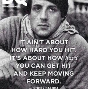 It isn’t about perfection. It’s about getting hit and getting back up. But not just about getting back up, but getting back up and moving forward. Not backing up. Not running from the challenge.
